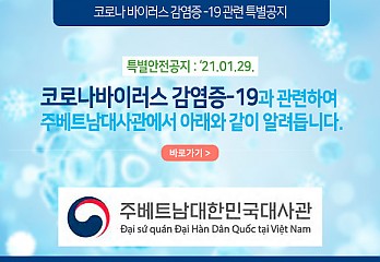 코로나바이러스 감염증-19과 관련하여 주베트남대사관에서 공지한 내용입니다. ✔ 세부 내용 : http://koreanhcm.org/?p=3570